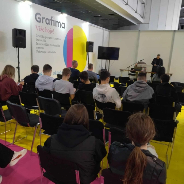 Ученици 2-4 одељења, у пратњи наставника Драгане Пантић и Мише Лешћана, посетили су 10.10.2025. године 45. Међународни сајам графичке, папирне и креативне индустрије под називом ГРАФИМА.