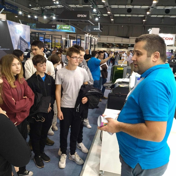 Поред изложених машина и готових производа, ученици су имали прилику да виде израду производа као што су идентификационе картице, штампање на шољама и плакатима.
