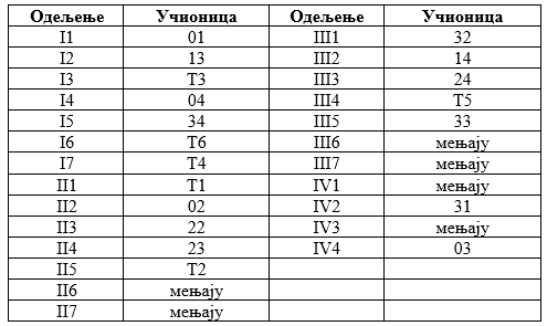 Распоред учионица за школску 2025/2026. * (II полугодиште)