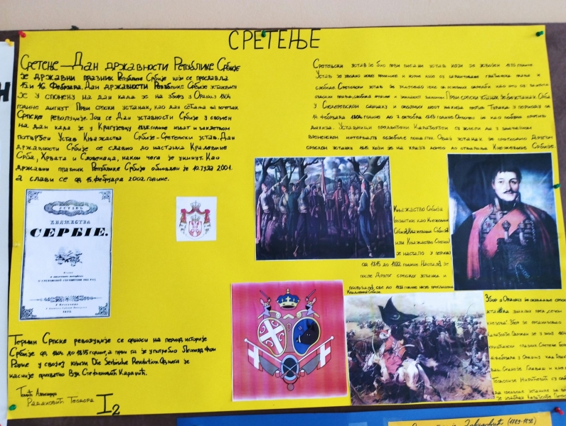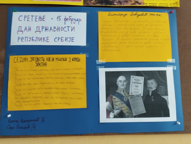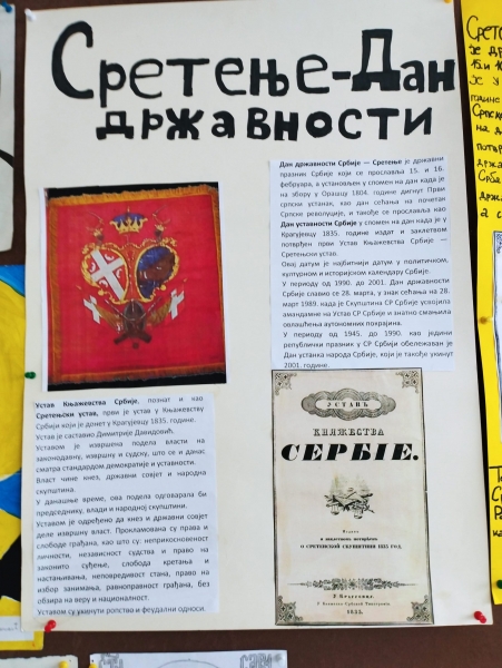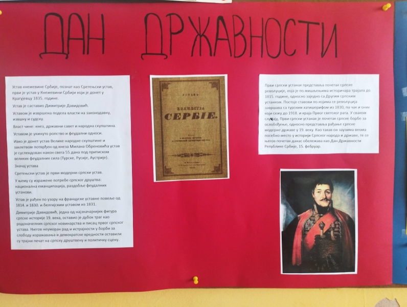 У нашој школи, Дан државности је обележен на часовима историје и социологије са правима грађана. Радови ученика су изложени у холу школе.