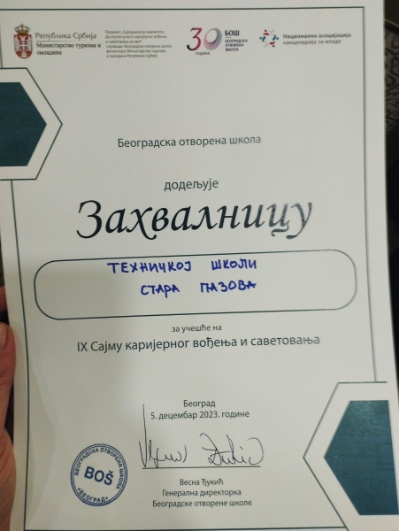 Ученици одељења IV/3, Владимир Лакатош и Павел Биреш, промовисали су роботику, презентацијом „Роботи у акцији“. Њихова презентација је имала за циљ да промовише секцију из роботике и заинтересује и мотивише ученике за ову област.