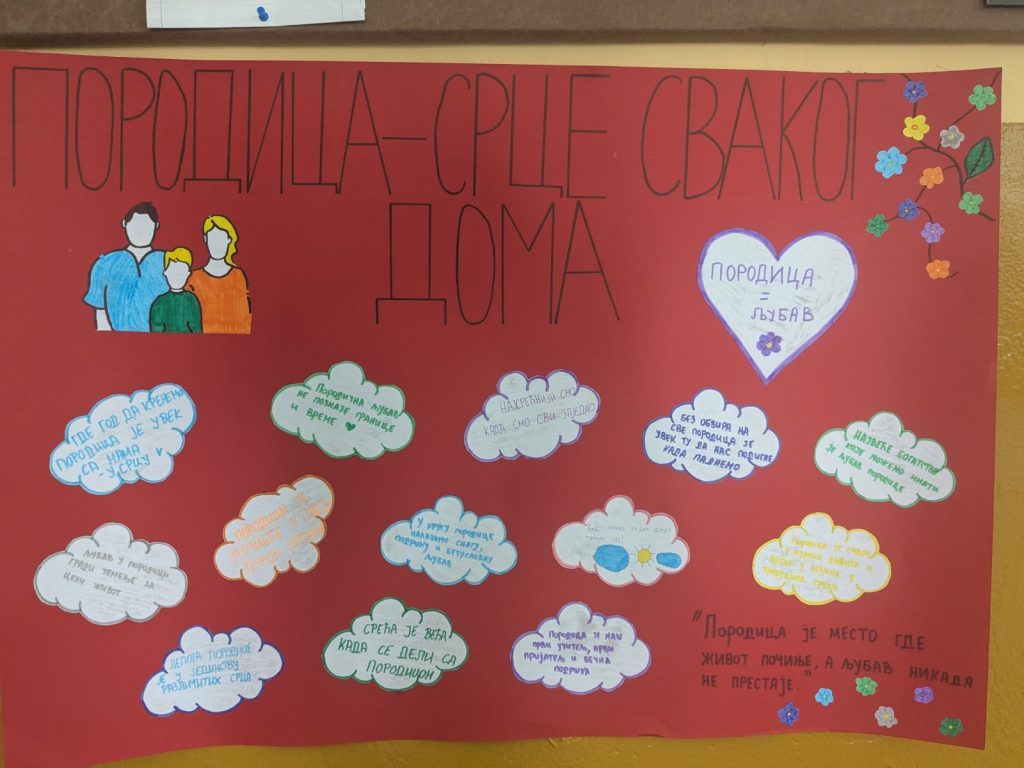 У нашој школи овај дан је обележен низом едукативних и креативних активности. Ученици су заједно са својим наставницима припремили пригодан програм који подразумева креативне радионице, литерарне радове, дискусије, презентације као и паное где су писали поруке о породичним вредностима.